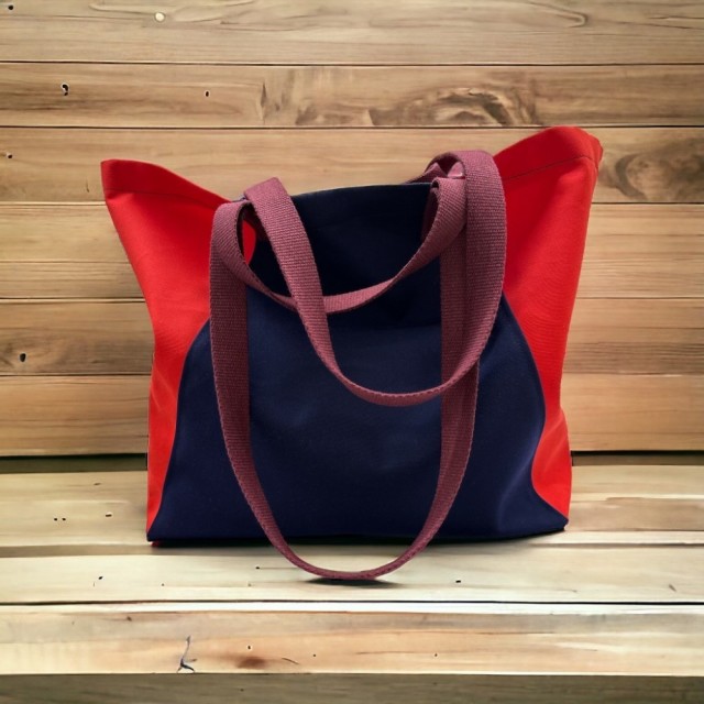 Romslig og smart bag sydd av kalesjeduk med praktisk lomme inni som du blir glad i. Bagen har to sett remmer så du både kan ha den over skulderen eller bære den i hånden.
